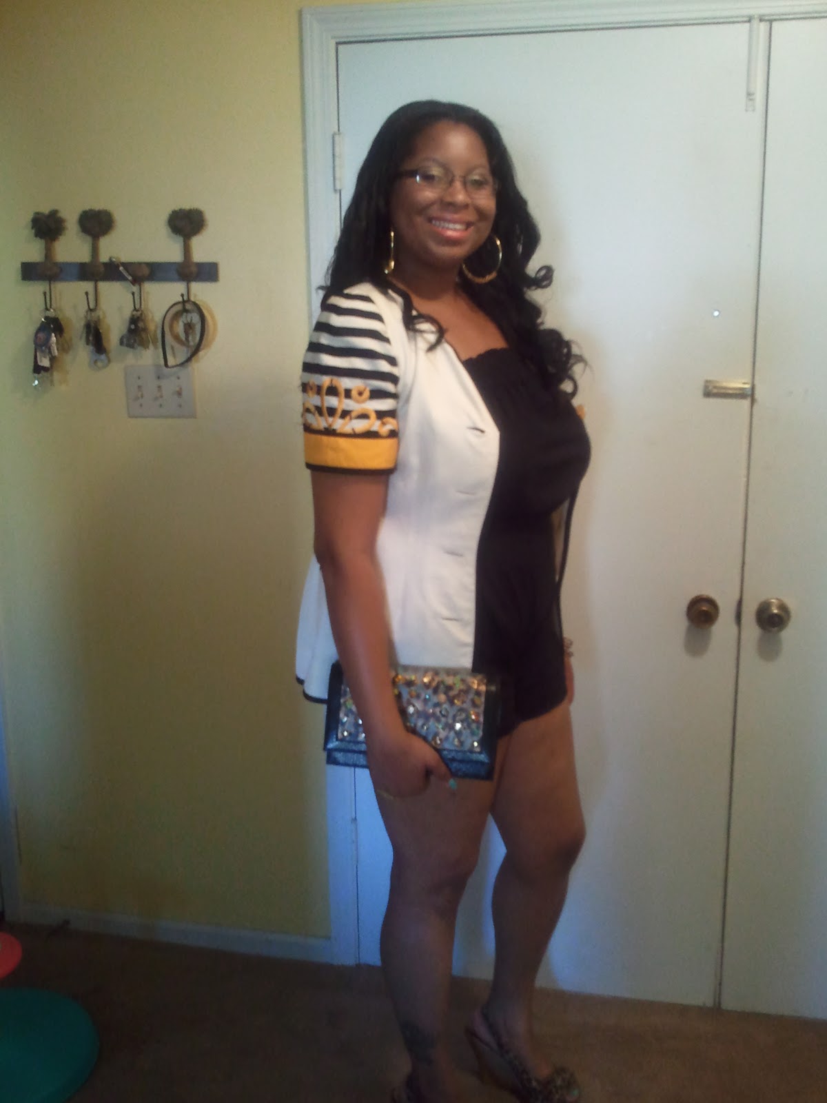 Found this lovely suit jacket or blazer @ Repeat Boutique on Summer Ave for $5.00. Paired it with a romper and some leopard printed wedge heels and a Christian Audigier leopard clutch.